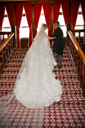 父と一緒にあの重厚な階段を下りて入場したことは、忘れられない思い出です。